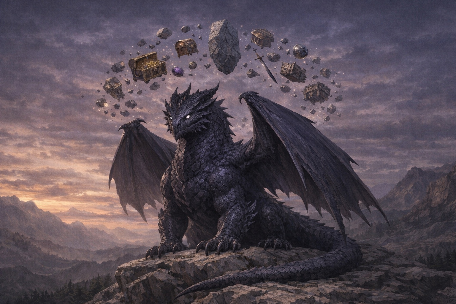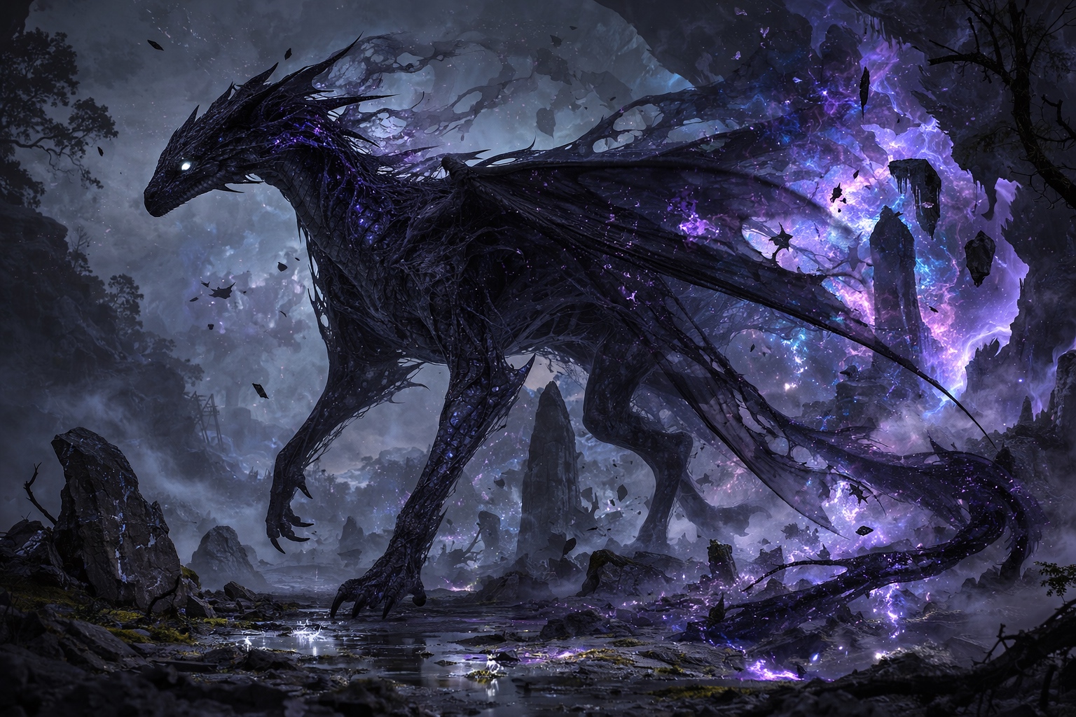 A shadow-aspected dragon that exists partially in the Void, able to phase between states of material and near-absence. The Umbral Dragon is never fully visible — it exists as a suggestion of darkness, a shape that light avoids — and its breath weapon is a cone of pure shadow that drains life as efficiently as any blade.