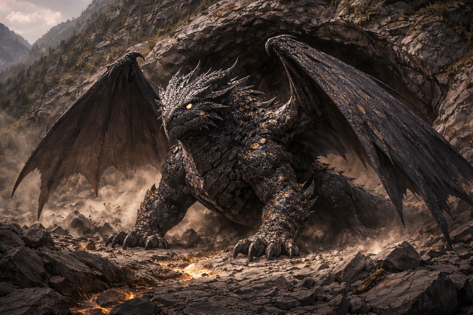 A subterranean dragon that burrows through rock and has developed a hide partially mineralized by centuries of contact with raw ore veins. Ore Dragons collect and incorporate metals into their own body over time, making elder specimens walking geological formations — heavily armored and capable of hurling molten rock as a breath weapon.