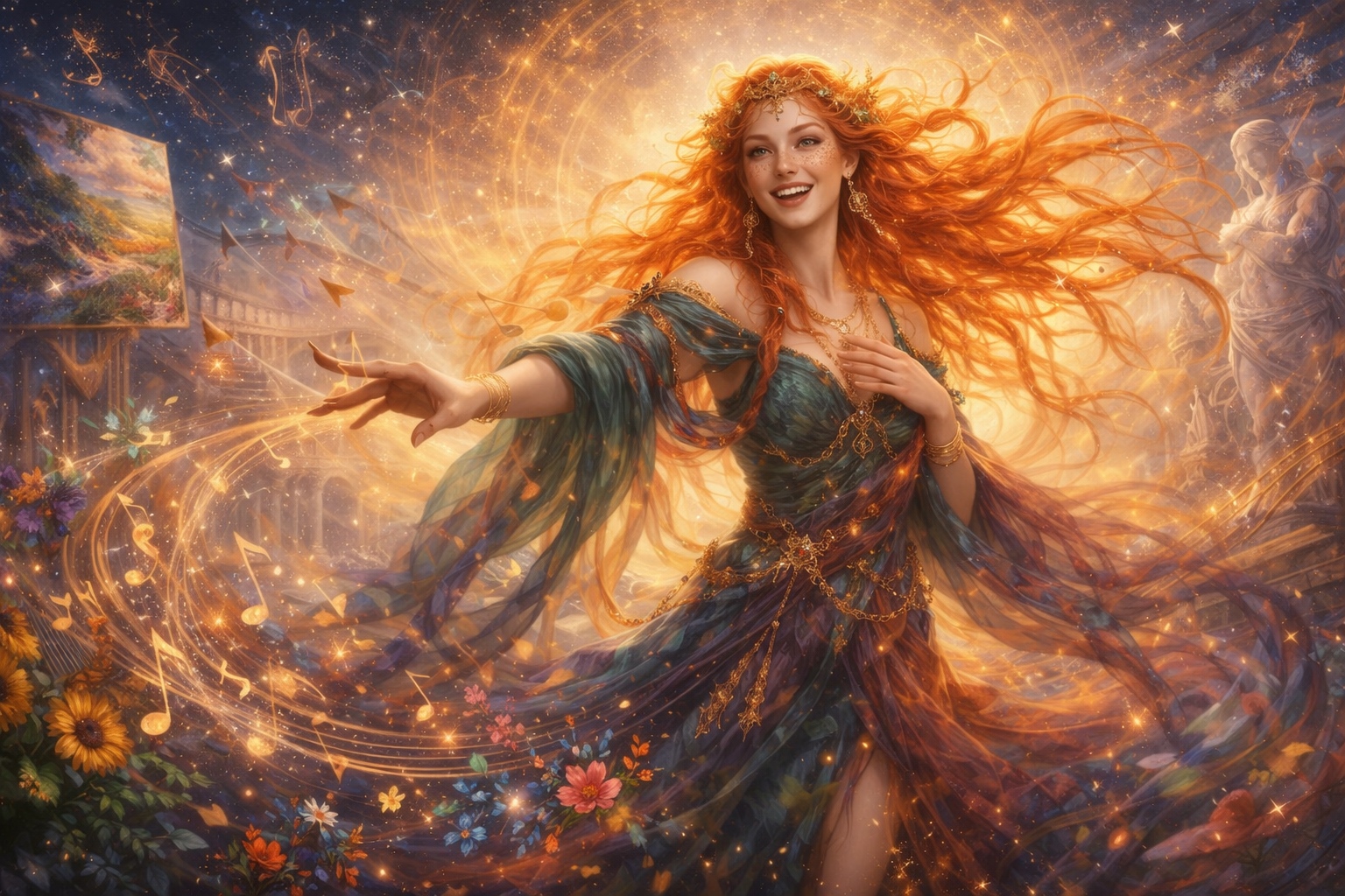 - Territory aesthetic: Vast concert halls and amphitheaters, gardens designed as performance spaces, libraries with singing walls, galleries filled with art that seems to move and change. Everything is beautiful and dynamic—the landscape itself seems to create, to express, to transform. Colors are vivid; sounds are harmonious yet complex; there is constant motion, constant creation, constant transformation. The air itself seems to hum with inspiration.