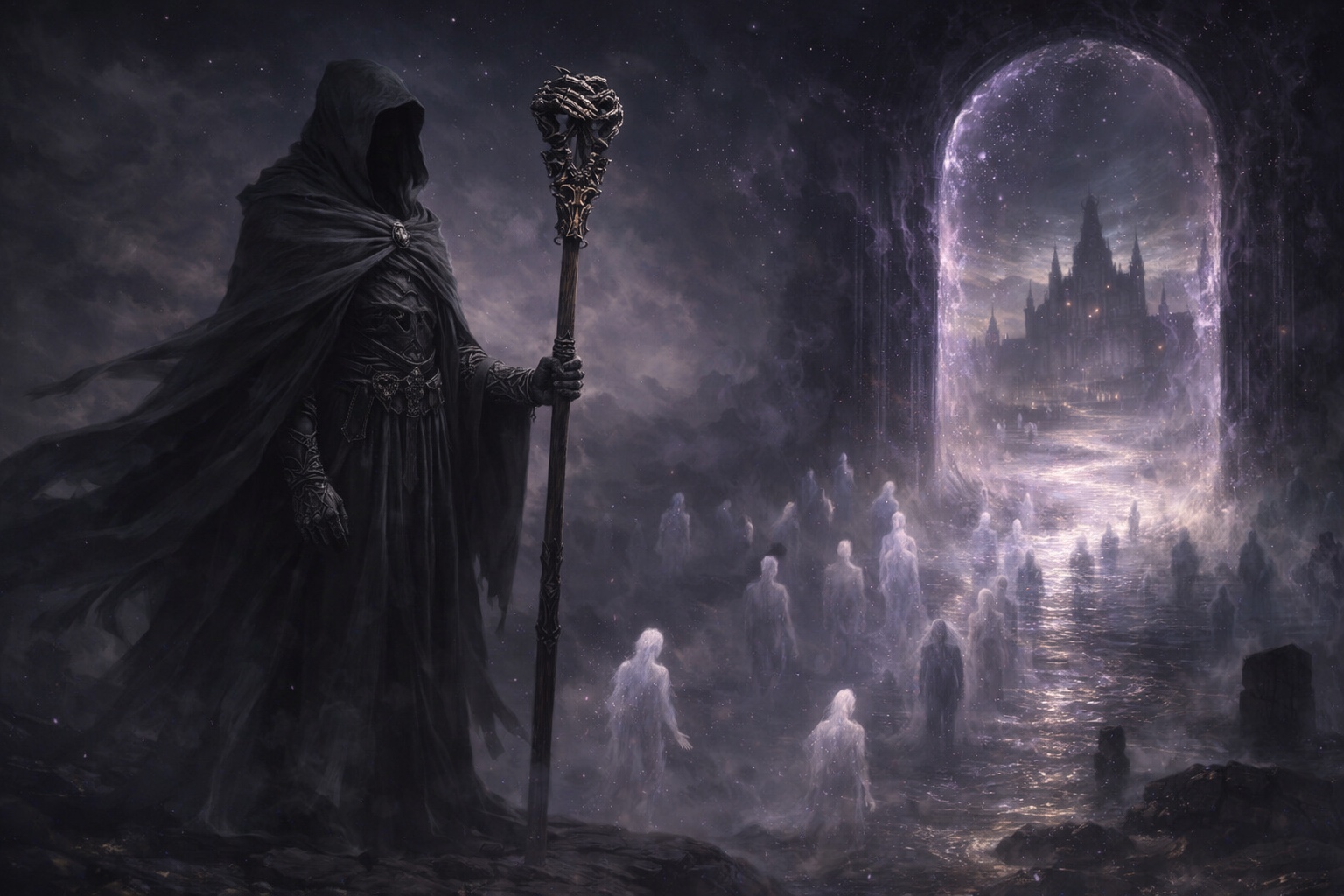 Among the Shards that fell into the world was one piece that contained something the other gods had overlooked: the understanding that death was not aberration or failure, but the necessary structure that made life coherent. That every life that ended made room for lives yet to come. That the process of dying could be witnessed, honored, and eased.