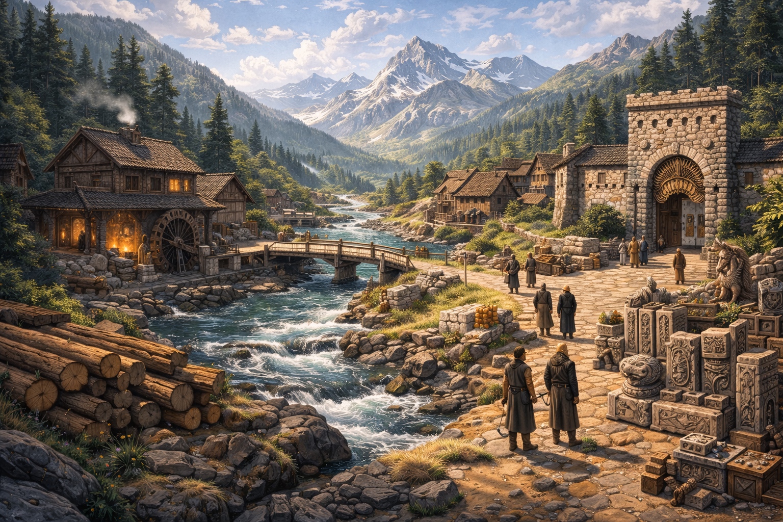 | Economy | Sustainable timber, mountain stonecraft, river trade origination point |