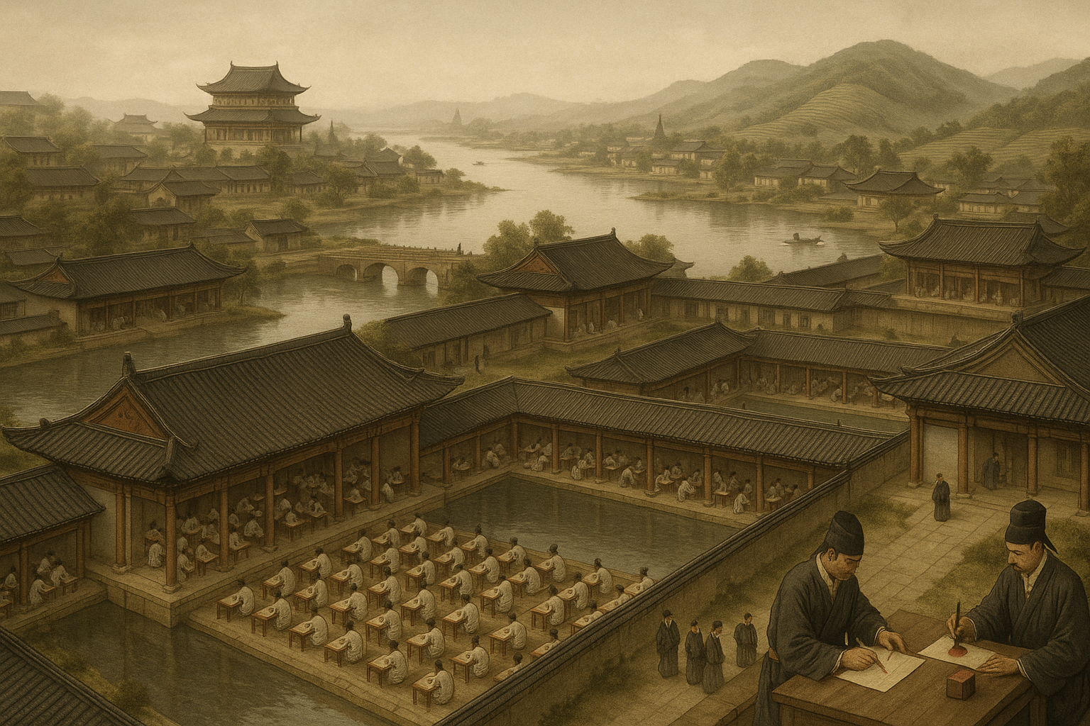 The examination-based advancement system means that family origin does not formally determine professional standing, though the families with the longest histories in the document tradition have advantages that the formal examination structure does not entirely counteract.