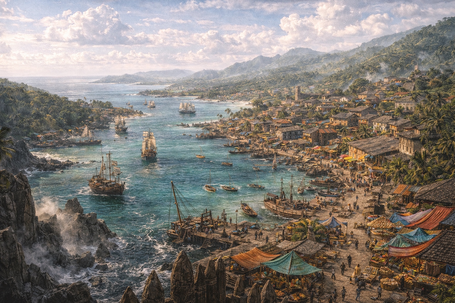 | Known For | The most cosmopolitan trade hub in the Sea of the Heavens; the Sirena's Tear contraband trade; a civic culture of pleasant opacity |